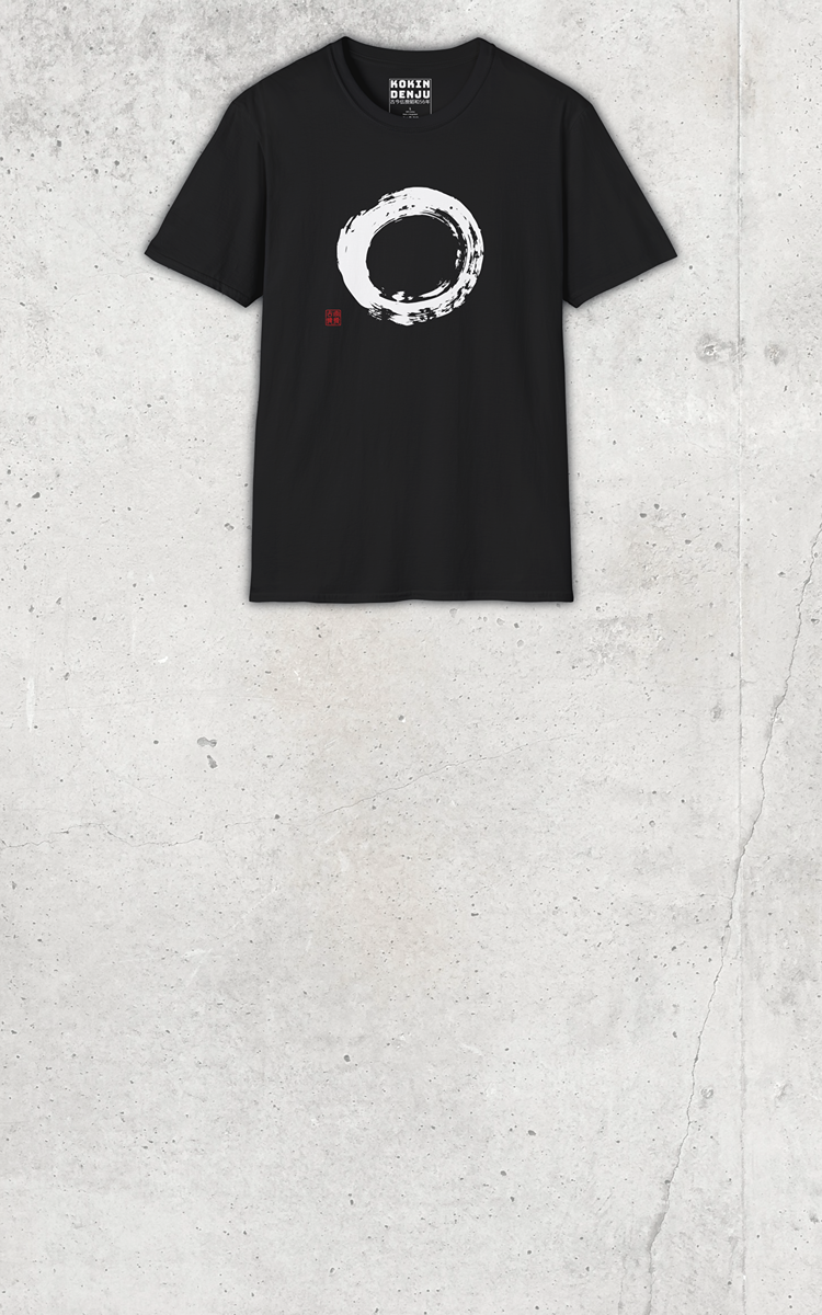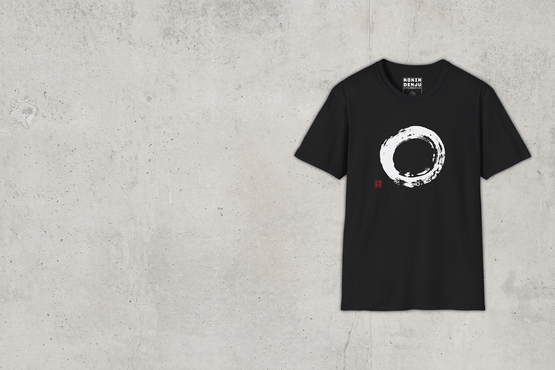 This minimalist shirt features a powerful Zen Circle (or ensō) by Torei Enji, balanced by our subtle red Kokin Denju seal. A perfect companion for your daily practice.
